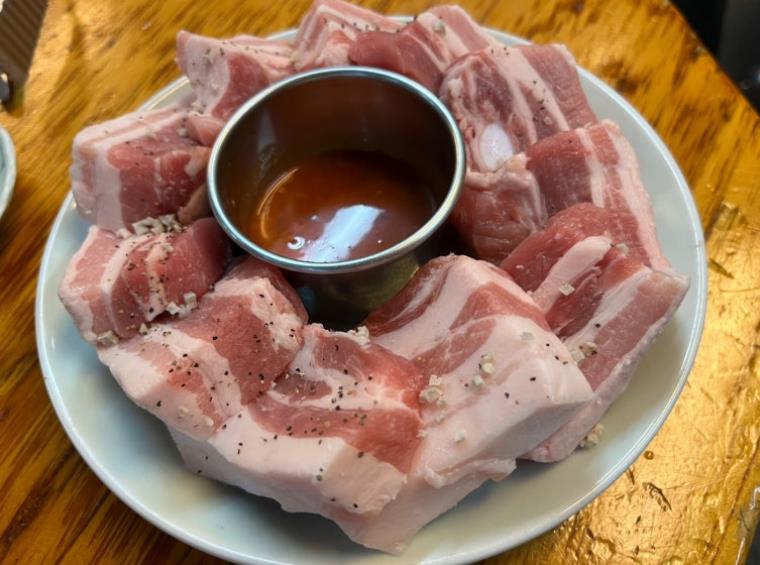 고기는 두툼한 두께로 제공되어 씹는 맛이 일품이며, 숯불에 구워 풍부한 풍미를 느낄 수 있습니다. 특제 소스와 함께 먹으면 고기의 맛이 한층 더 살아납니다. 인기가 많아 웨이팅이 길 수 있으니 일찍 방문하거나 재료 소진 전에 방문하는 것이 좋습니다.